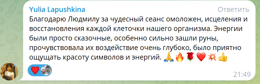 Отзывы о полученных результатах целительской и инициатической практики Мастера 9999 Людмилы Горсковой :